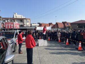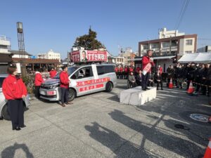 当日は、冬晴れの澄んだ空のもと、多くの支援者や関係者が会場に集い、厳かな雰囲気の中で式典が進行しました。すずき英敬氏は街頭に立ち、これまでの歩みとともに、地域の声を国政に確実に届けていく決意、そして日本の未来に対する強い責任感を込めた力強い訴えを行いました。
